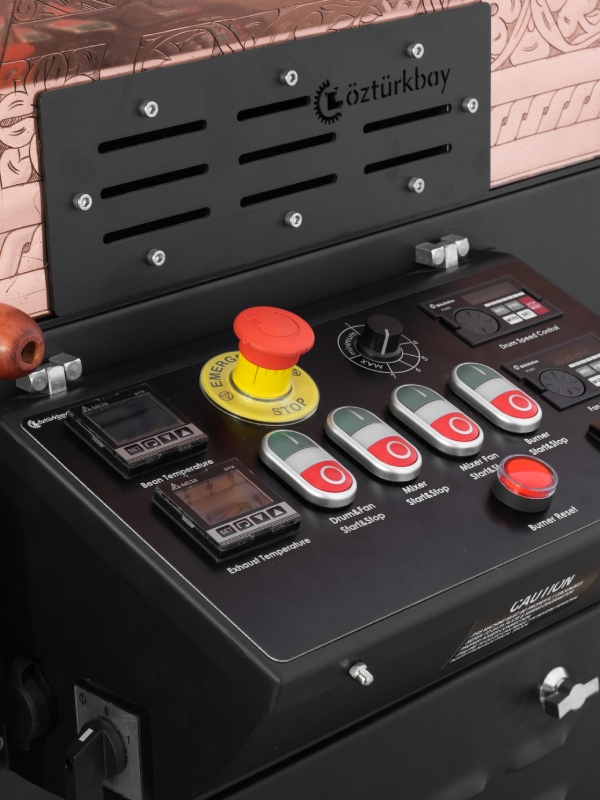 - Numune sürgüsü , gözetleme camı ve digital termometreyle kolaylaşan kahve kavurma işlemi.